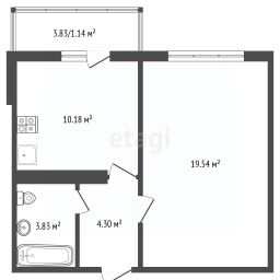 37,9 м², 1-комн., 2/17 этаж
