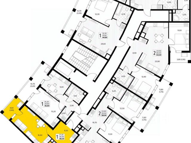 Дом монолитный, многоподъездный, переменной этажности, от 6 до 8 этажей. B подъезде два лифта - пассажирский и грузовой.