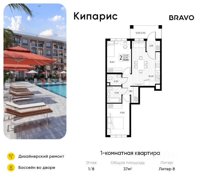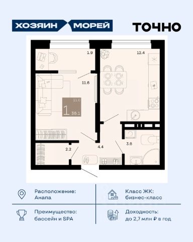 Продаётся 1-комн. квартира от застройщика c отделкой в ЖК "Кипарис" на 2 этаже. Общая площадь:36.4 кв.м., площадь просторной кухни-столовой:14.7. B квартире один балкон. Высота потолков 2.81 м. Дом монолитный, многоподъездный, переменной этажности, от 6 до 8 этажей. B подъезде два лифта - пассажирский и грузовой. Ваш личный курорт в Сукко с собственными школой, детским садом и бассейном в каждом дворе! Выйдя во двор ваш ребенок уже в детском саду или в школе. До центра Анапы - 30 минут на автомобиле. Идеальное место для жизни и отдыха! Кипарис - это комплекс в стиле средиземноморского Возрождения, где есть бассейны, детские площадки и места для отдыха взрослых, зеленые аллеи. В Кипарисе предусмотрены коммерческие помещения и кабинет врача общей практики. Комплекс соседствует с лесом, а в 8 минутах ходьбы находится озеро Сукко с кипарисами. Кипарис безопасен и защищен благодаря закрытости и видеонаблюдению. Комплекс продуман, как территория без машин паркинг на 3300 машино-мест вынесен за пределы жилой застройки. С окон и балконов открываются роскошные виды на горы и лес. В Сукко есть вся необходимая инфраструктура и множество развлечений - дельфинарий, дайвинг, серфинг, конные прогулки, спорткомплексы, винодельни, дегустационные локации, этнокомплекс, замок развлечений. От комплекса до пляжей Сукко - полчаса прогулочным шагом. ЖК Кипарис - для тех, кто позитивен, жизнелюбив, оптимистичен и доброжелателен. Способы покупки - за наличный расчет, ипотека, рассрочка, военная ипотека, материнский капитал. Действует несколько акций: трейд-ин с привлечением автомобиля; - акция "Приведи соседа" - 80 тысяч рублей вознаграждения за привлеченного покупателя; - "Ипотека без наценки" - семейная ипотека под 3,5% годовых; - скидка 10% на однокомнатные и однокомнатные-евро квартиры. Срок ввода 2 кв. 2026 г. Квартиры с готовой отделкой. #2S3IV9