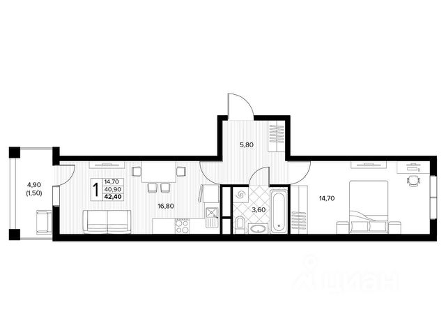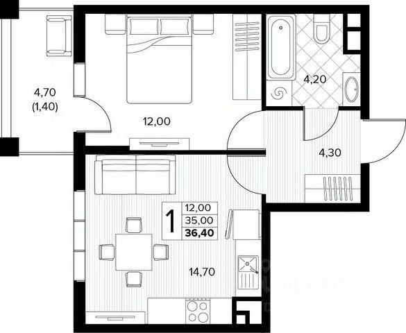 Продается 1-комнатная квартира площадью 36.40 кв. м без отделки, расположенная на 4 этаже, в новом жилом комплексе комфорт-класса "Кипарис". Прекрасный район, окруженный реликтовыми лесами и живописным рельефом гор. Адрес жилого комплекса - муниципальный округ Анапа, село Сукко, улица Мирная, дом 13.