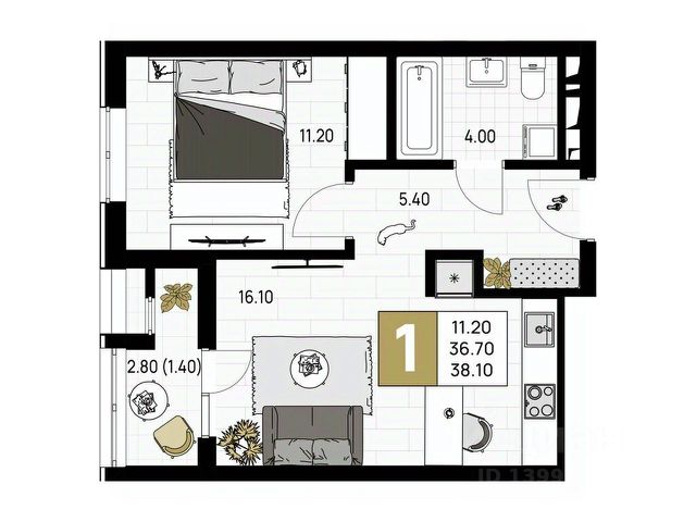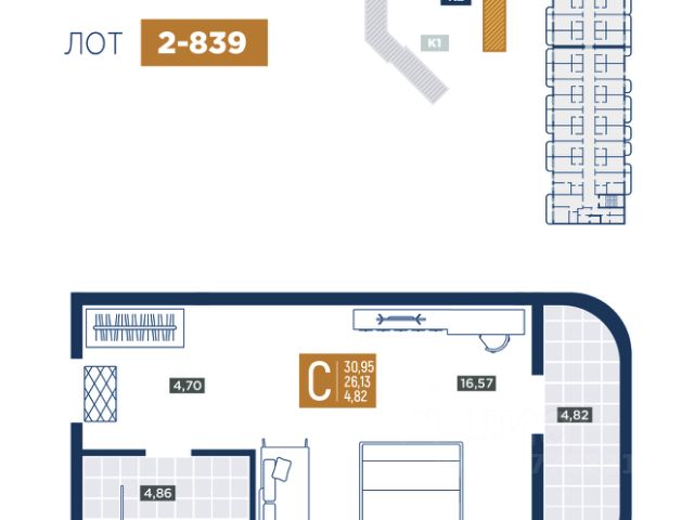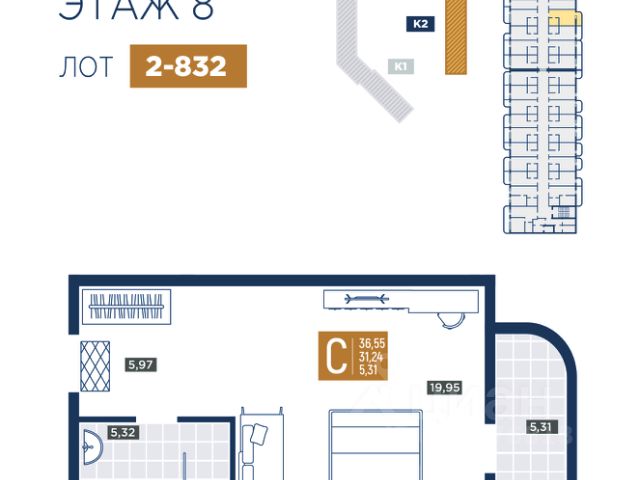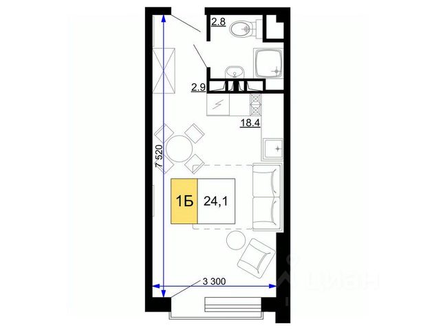 Общая площадь 32,2 м2.