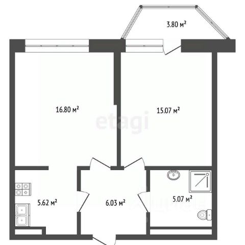 Общая площадь 52.35 м2.