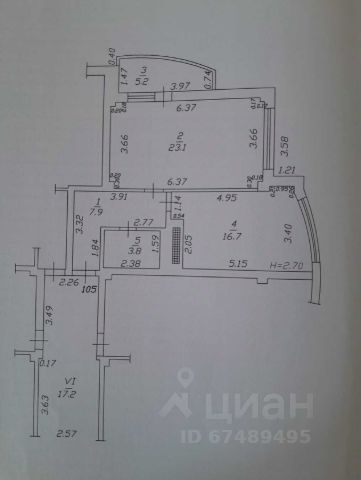 комната 17.8 м²,