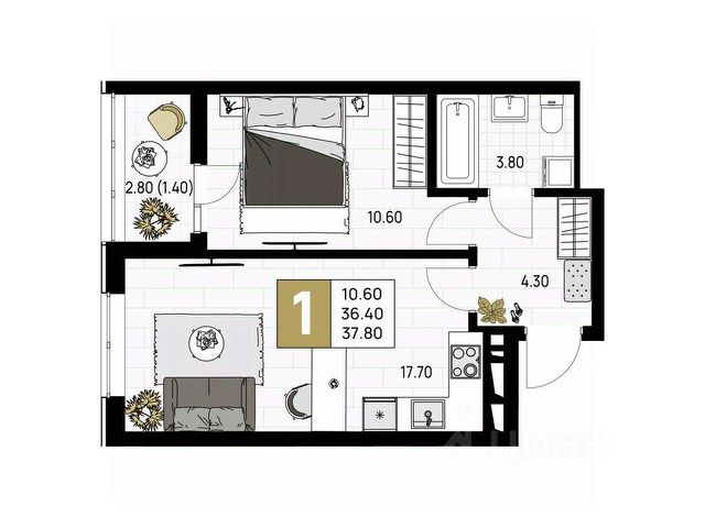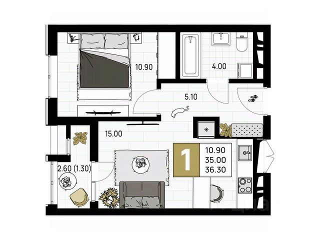 Однокомнатная квартира в семейном квартале "На Высоком берегу" — это продуманное пространство для тех, кто ценит комфорт, порядок и уют у самого моря. Просторная кухня легко превращается в полноценную обеденную зону, создавая идеальные условия для приготовления пищи и душевных семейных ужинов. Отдельная светлая комната обеспечивает приватность и комфорт, а вместительная прихожая — не просто переходное пространство, а функциональная зона хранения. Лоджия с витражным остеклением добавляет света и воздуха, а также становится уютным уголком для отдыха.