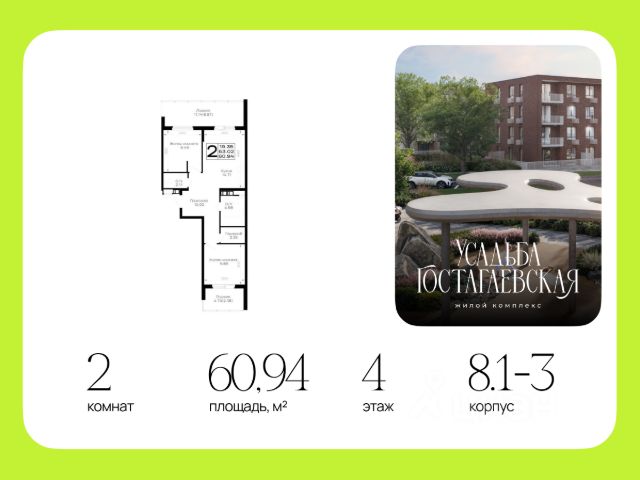 Общая площадь 61__м2 - огромная кухня, просторная прихожая.