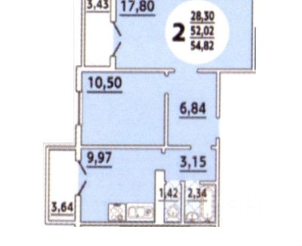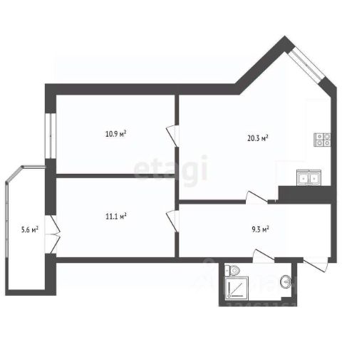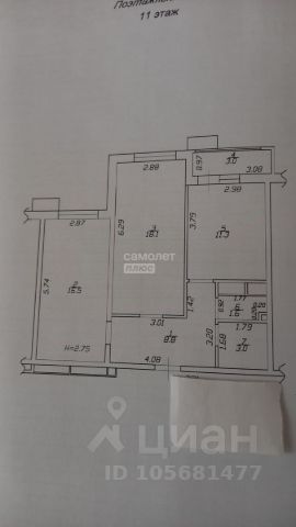 11/12 этаж монолитного дома, общая площадь 63.7 м2.