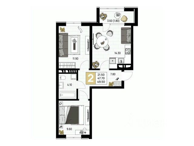 Только через "Самолет Плюс", по программе "Ипотека от партнеров" можете купить эту квартиру под ставку от 14,75% *