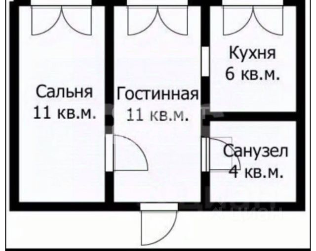 Квартира состоит из двух изолированных комнат и санузла. Общая площадь составляет 30,9 квадратных метров.