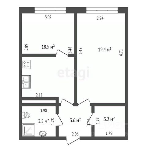 Кухня-гостиная 13,5 м² — уютное пространство для семейных завтраков и вечерних посиделок. Газовая плита для тех, кто любит готовить, и индивидуальное газовое отопление — вы платите только за своё тепло.