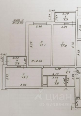 В квартире вы легко разместите всю необходимую мебель, так как комнаты правильной прямоугольной формы 17,4 и 10 кв.м.
