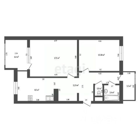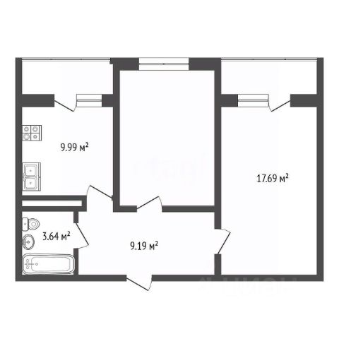 Общая площадь 50,4__м2 - большая кухня, просторная прихожая.