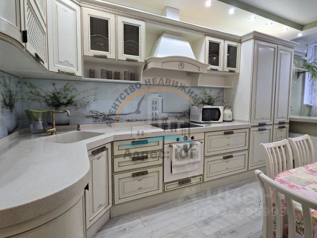 Кухня 12,9 кв.м., поможет легко разместиться всей семье за большим обеденным столом
