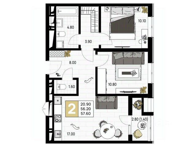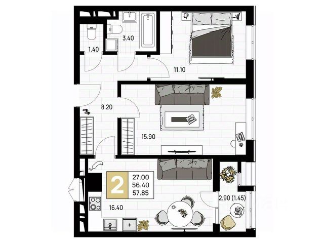 Двухкомнатная квартира в семейном квартале "На Высоком берегу" - это гармоничное сочетание функциональности, уюта и света, созданное для спокойной и размеренной жизни у моря. Просторная кухня легко становится центром домашнего тепла - здесь удобно готовить, принимать гостей и собираться всей семьей за обеденным столом. Уютная гостиная (зал) - идеальное пространство для отдыха и душевных вечеров, а отдельная спальня обеспечивает полную приватность и комфорт для полноценного сна и релакса. Большая лоджия с витражным остеклением наполняет квартиру мягким естественным светом и служит продолжением жилого пространства.