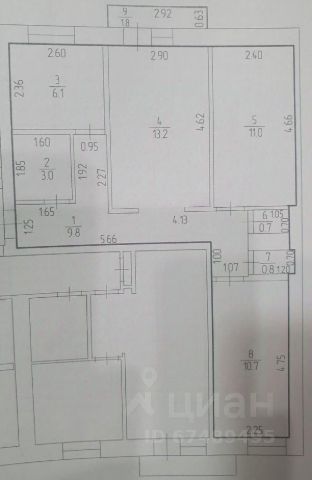 11/12 этаж монолитного дома, общая площадь 63.7 м2.