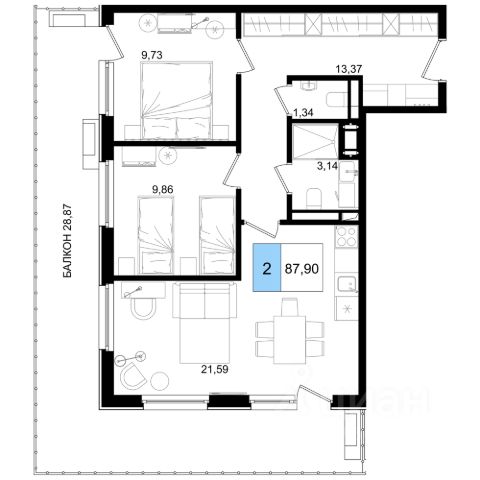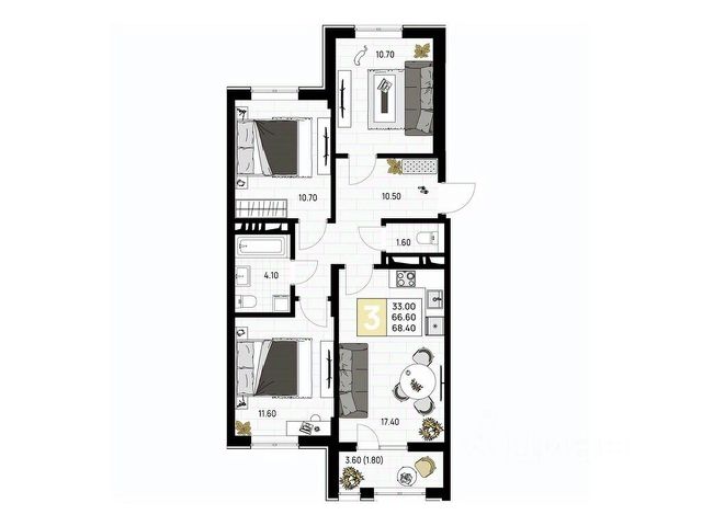 Квартира впечатляет своей планировкой и простором. Вас ждет довольно просторный коридор 13,7 кв.м с возможностью установить вместительный шкаф купе вдоль всего коридора, светлая и уютная кухня-гостиная 16,2 кв.м , а также удобные жилые комнаты 12,6 кв.м и 11,9 кв.м , 12,4м кв с противоположной стороны квартиры. Два санузла принесут дополнительный комфорт в вашу повседневную жизнь. Обременений нет!