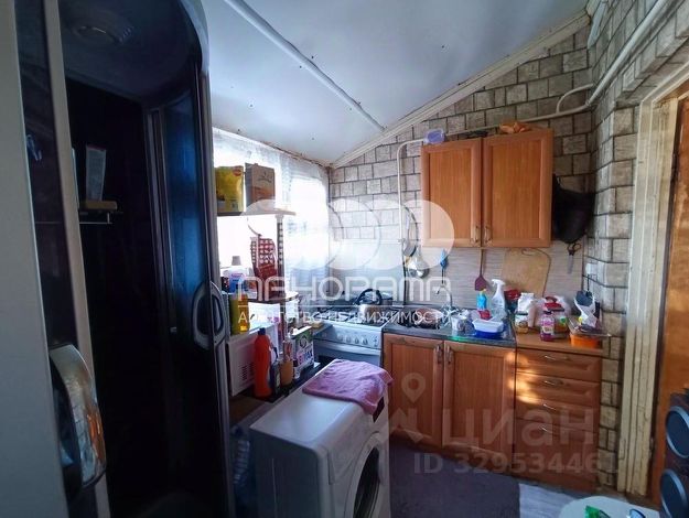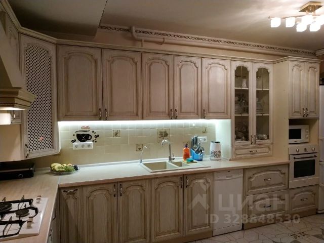 Кухня-столовая, общая площадь 18 кв.м. На стенах керамическая плитка, местами оклеены обоями. На полу ламинатная доска. Потолок окрашен. Кухня оборудована системами энергоснабжения, электроосвещения, канализации, холодным и горячим водоснабжением.