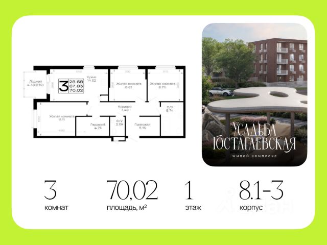 Количество комнат: 3