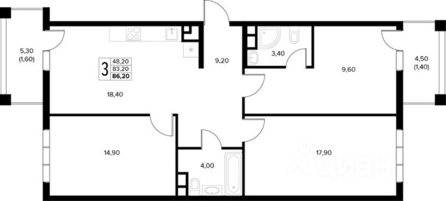 Трехкомнатная квартира в семейном квартале "На Высоком берегу" — это продуманное, функциональное и по-настоящему комфортное пространство для жизни всей семьи. Удобная планировка обеспечивает практичную организацию жилого пространства: из прихожей легко и независимо попасть в каждую из трех комнат. Каждая комната — это отдельная зона уюта и приватности: спальня для отдыха, детская или кабинет для учебы и работы, гостиная для встреч и совместного досуга. Просторная кухня легко вмещает обеденную зону и становится сердцем дома, где собираются близкие. Лоджия с витражным остеклением добавляет света, воздуха и ощущения простора, а также служит дополнительным местом для отдыха с видом на зеленую, благоустроенную территорию квартала.