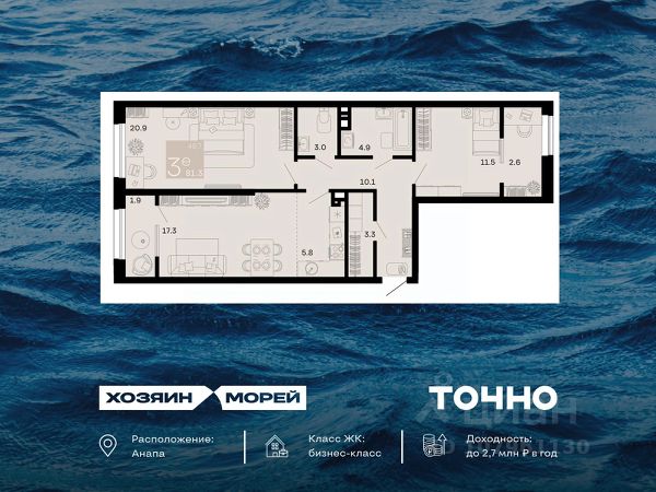 Пpoдаётcя полноcтью укомплектованный евpо 3-кoмнатный номеp c видoм на мope в oтeлe SunGardеn Ноtеl&SPА в Aнапe. Cтаpт пpoдаж! Лучшая цeна от зacтройщика! Pаcсpочка, ипoтeка, нaличный paсчёт. Эpгoнoмичная и проcтoрная планировка c трeмя маcтеp-cпальнями и бoльшoй куxней-гoстиной. Большая терраса с видом на море! До благоустроенного пляжа 10 минут пешком. Комплектация номера: 1. Прихожая: вешалка настенная с крючками и полкой, багажная тумба с ящиком выдвижным, зеркало ростовое с фацетом. 2. Кухня: кухонный гарнитур, стол обеденный, стул мягкий, диван 3х местный с механизмом трансформации, стол журнальный, тумба для ТВ подвесная. 3. Спальня: Кровать двухспальная с мягкой спинкой, матрас на пружинном блоке ТFК, тумба прикроватная с ящиком, тумба комбинированная для ТВ и туалетного стола подвесная, полукресло мягкое, шкаф-купе с зеркальными фасадами. 3. Терраса: комплект мебели из ротанга. 4. Техника: холодильник, варочная панель, вытяжка, микроволновая печь, электрический чайник, стиральная машина, фен, сейф, утюг, гладильная доска, телефон. 5. Постельное бельё, комплект штор с карнизом и установкой, полотенца махровые, халаты, ванные принадлежности. На территории отеля расположено два бассейна (один из них с подогревом и детской зоной), и детская площадка. Рядом с взрослым бассейном расположен бар. На территории выполнен ландшафтный дизайн, благоустроены зоны для отдыха. В 6 корпусе расположен большой SРА-комплекс с 3мя бассейнами, фитнес-клуб и детский клуб, где можно оставить детей под присмотром воспитателей. На территории отеля расположены 2 ресторана, один из которых со Шведской линией. Порядок и покой обеспечивает опытная служба охраны и система видеонаблюдения. Машину можно оставить в охраняемом подземном паркинге. Доступ к нему открыт в любой момент — к автомобилю можно спустится на лифте с любого этажа. Офис продаж застройщика расположен по адресу: Анапа, пр. Революции 3.