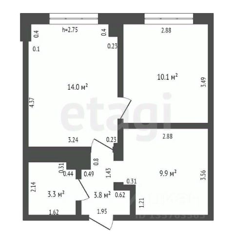 11/12 этаж монолитного дома, общая площадь 63.7 м2.