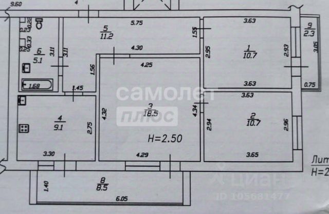 11/12 этаж монолитного дома, общая площадь 63.7 м2.