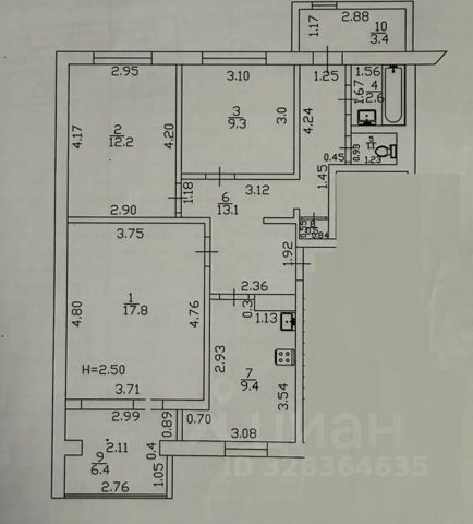 Комната 16,9+11,5+10,5 м2
