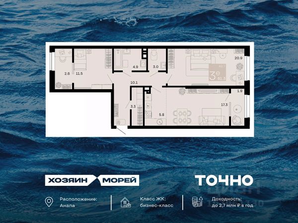 • ✓ В базе Циан 453 3-комнатных квартир в новостройке с отделкой в Анапе