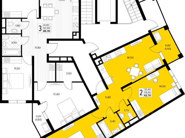 общая площадь квартиры: 88,04 кв.м,
