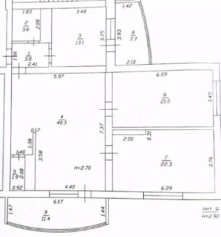 11/12 этаж монолитного дома, общая площадь 63.7 м2.