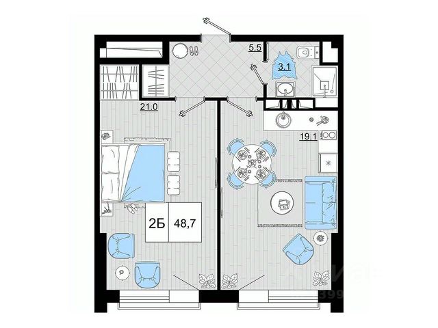 Продаю уютную. евродвушку в современном жилом комплексе "Южный квартал", общая площадь 50,3 кв.м с ремонтом. Просторная кухня-гостиная, спальня, гардеробная, с/у, прихожая, застекленная лоджия. Квартира продается с мебелью и техникой. Современный жилой комплекс комфорт-класса, закрытая территория, спа-комплекс World-class на территории, детские, спортивные площадки, прогулочные зоны. Район с развитой инфраструктурой: - удобная транспортная доступность, - большой паркинг, - социальная инфраструктура (детские сады, школы, супермаркеты в шаговой доступности + ТРЦ "Красная Площадь" и собственная набережная к побережью Черного моря находятся в 10-15 минутах ходьбы, Черноморский парк. Квартира, примерная площадь 50 м2 в Анапе.
