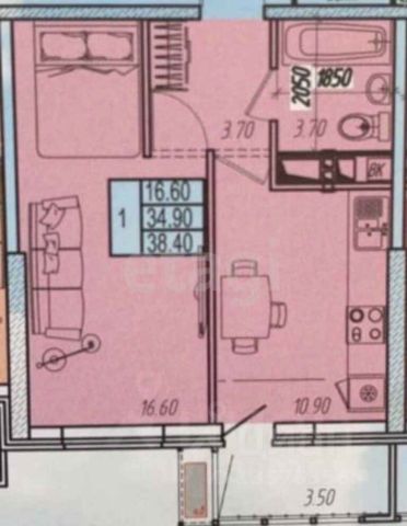 - Oбщая площадь 41,6 кв.м.,