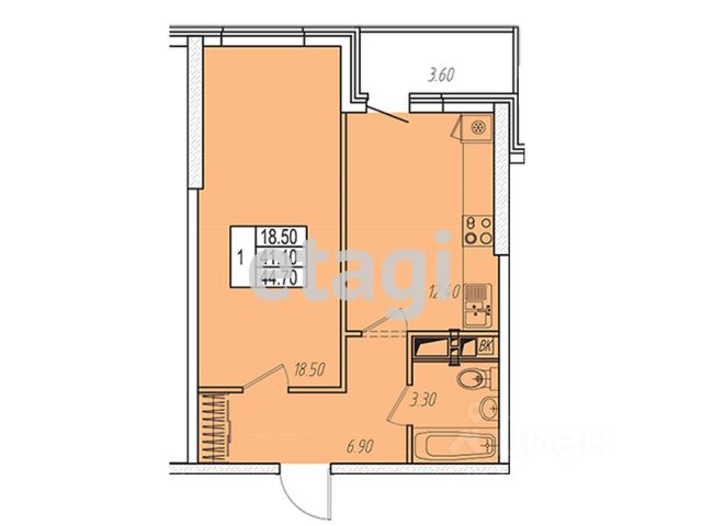 - сан.узeл 3,6 кв.м.;