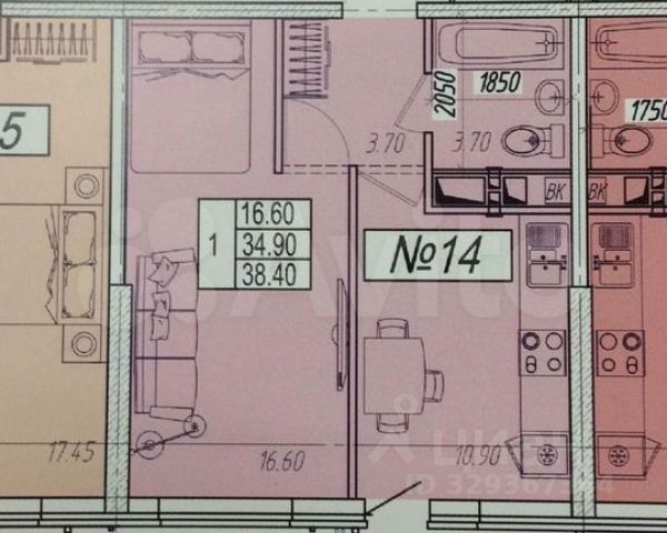- жилая комнатa 17,3 кв.м.,