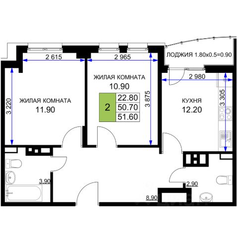 Продаётся 2-комнатная квартира в строящемся доме (Литер 6), срок сдачи: IV-кв. 2025, общей площадью 51.1 кв.м., на 2 этаже. Новый жилой комплекс от застройщика "Межсанаторный" расположен по адресу город Анапа, Межсанаторный проезд.