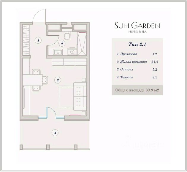 Жилая комната общая площадь 24,1 кв.м.