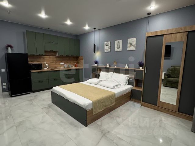 Кухня-гостиная оборудована кухонным гарнитуром ,со встроенной техникой , с кухни есть выход на лоджию которую можно оборудовать , под рабочую зону , зону отдыха или использовать под хранение , с лоджии к открывается прекрасный вид на город, море и крещенский парк .