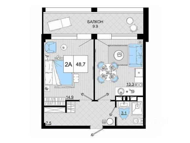 Продаются 2-комнатные апартаменты в строящемся доме (Литер 2), срок сдачи: I-кв. 2027, общей площадью 48.7 кв.м., на 2 этаже. Гостиничный комплекс "Мореград", расположенный в живописном месте города-курорта Анапы, гостиничный комплекс "Мореград" предлагает идеальное сочетание уютной обстановки и удобного расположения. Всего в трех минутах ходьбы от тенистых зеленых аллей Пионерского проспекта, он станет идеальным выбором для отдыхающих, желающих насладиться близостью к морю. Песчаные пляжи Черного моря, всего в 7 минутах ходьбы от комплекса, приглашают насладиться теплым солнцем и ласковыми волнами. "Мореград" - уникальный современный гостиничный комплекс, где гостям будут доступны все удобства отельного сервиса. Коммерческие блоки и различные виды отдыха - рестораны, бары, магазины, лаунж-зоны, оборудованные спортивные и детские площадки и многое другое сделают отдых гостей незабываемым.