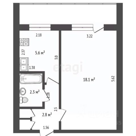 Общая площадь 43 м2.