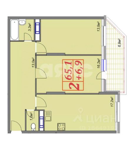 Общая площадь 61__м2 - огромная кухня, просторная прихожая.