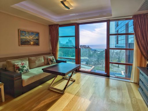 Квартира в премиум жилом комплексе - ЖК Золотая бухта. Видовая двухсторонняя квартира, евротрешка. Полностью укомплектована мебелью и готова к проживанию. В квартире две отдельных спальни с 2-спальной и 2-х ярусной кроватями, телевизорами, а также гостиная с кухонной зоной. В гостиной раскладной диван. Кухня полностью оборудована техникой и посудой. Прогулочная набережная. Закрытая, охраняемая территория. В шаговой доступности песчаные и галечные пляжи, школа серфинга, магазины, рынок, аптека, бювет с лечебной водой, санатории.