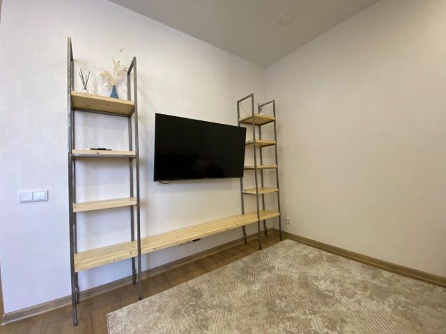 В квартире выполнен дизайнерский ремонт из дорогих материалов. Общая площадь - 60 м2, кухня - гостиная - 18 м2, большая прихожая - 6 м2, санузел совмещённый, огромный, но туалет и душевая кабина разделены. Тёплый пол. На кухне гарнитур сделан под заказ: встроенный холодильник, духовой шкаф. Большой выдвижной, современный диван, новый кухонный стол и стулья. Кухня, как отдельная студия. Комната - 22.7 м2, разделена на две части удобной декоративной ширмой. Есть действующий камин., домашний кинотеатр 3 Д. Большой, роскошный диван и современная дорогая кровать. Весь дизайн в едином стиле. В прихожей глубокий и огромный шкаф - купе.