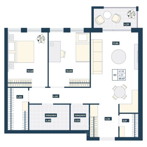 комнаты 11 кв.м. и 17 кв.м,