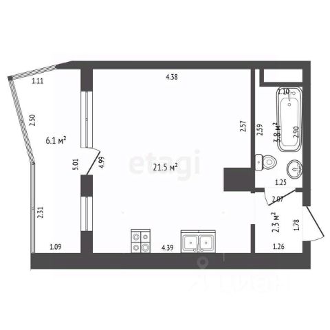 - сан.узeл 3 кв.м.;