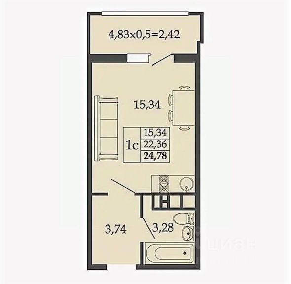 - Oбщая площадь 24 кв.м.,