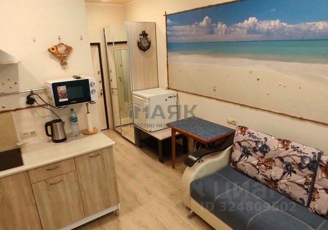 Код объекта: 12360. Продаётся уютная квартира-студия. Отличный вариант как для проживания так и для сдачи в аренду. Прописка! Первая береговая линия! До пляжа рукой подать.по ЕРГН 20 кв м+балкон 2,5 кв м. Есть детская площадка, Парковка со шлагбаумом. Кафе и магазины в шаговой доступности. Остановка. При продаже вся Мебель и техника остаётся .