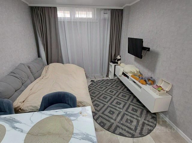 В квартире сделана шумоизоляция, на кухне и в прихожей на полу керамогранит, в комнате - ламинат.