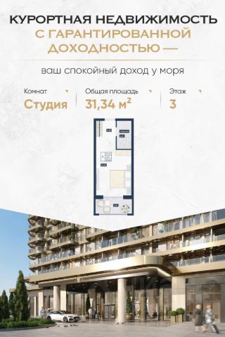 Комплекс Kairos - это идеальное место для тех, кто хочет инвестировать в гостиничный бизнес в самом популярном курортном городе на Черноморском побережье. С отделкой под ключ и полной меблировкой, этот девятиэтажный монолитный комплекс предлагает панорамные окна, открытые просторные балконы и современные удобства. Срок окупаемости всего 7,5 лет, а доходность по аренде составляет 12-13%. С учетом изменения стоимости актива, доходность достигает 22-23%. С 143 номерами, включая студии, однокомнатные и двухкомнатные номера, а также инфраструктурой, такой как бассейн, сауна, хаммам, детская комната, кардио зона, ресторан, бары на террасах и открытая терраса на крыше, гостиничный комплекс Kairos гарантирует комфортное пребывание для гостей. Расположенный всего в нескольких минутах ходьбы от набережной и центра Анапы, Kairos предлагает своим гостям удобный доступ к пляжу и туристическим достопримечательностям. Инвестируйте в успешный бизнес с Kairos и наслаждайтесь прибылью и качеством обслуживания для гостей. Продам квартиру-студию от застройщика в Анапе.