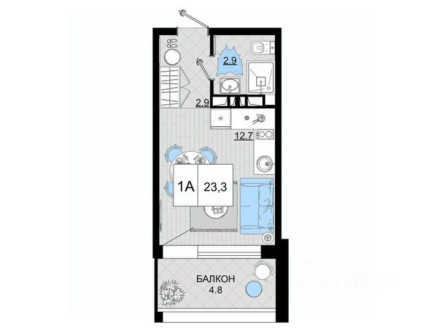 Арт. 129060416 Продается уютная студия 13,5 м2 на 4 этаже 5-этажного дома в районе Южного рынка и 4 школы. Из окон вид во двор. Есть прописка. До моря 20 минут. Дом качественно сделан, толстые стены, летом не жарко, зимой не холодно.