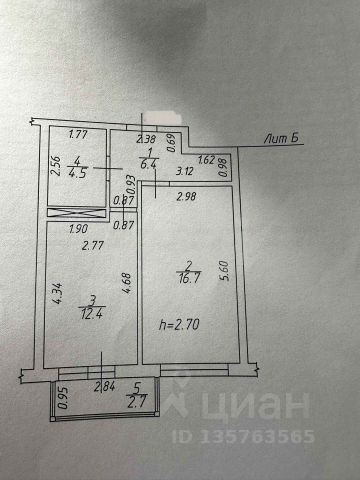 6/8 этаж монолитного дома, общая площадь 39.8 м2.
