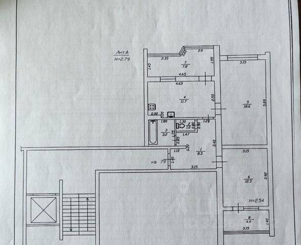 11/12 этаж монолитного дома, общая площадь 63.7 м2.